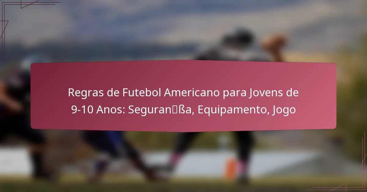As regras para jogadores de 9-10 anos no futebol juvenil americano são projetadas para equilibrar segurança e desenvolvimento de habilidades, diferindo significativamente de jogadores mais jovens e mais velhos. Estas regras enfatizam habilidades fundamentais enquanto introduzem elementos de jogo mais complexos, garantindo um ambiente seguro para os jovens atletas.