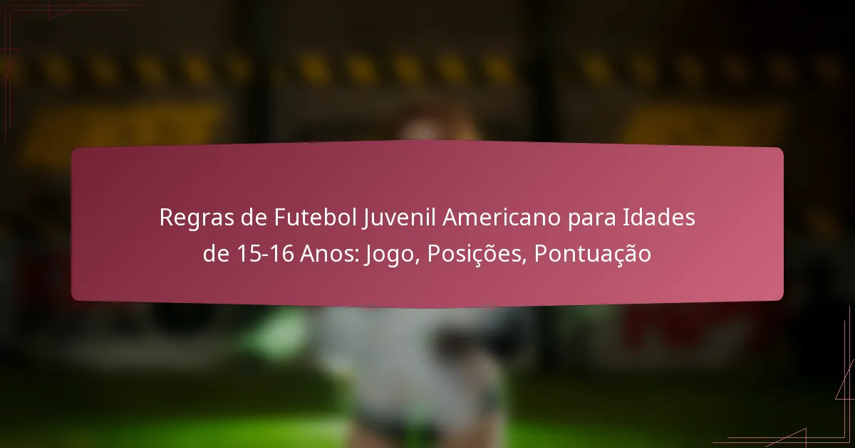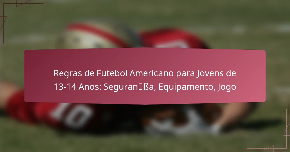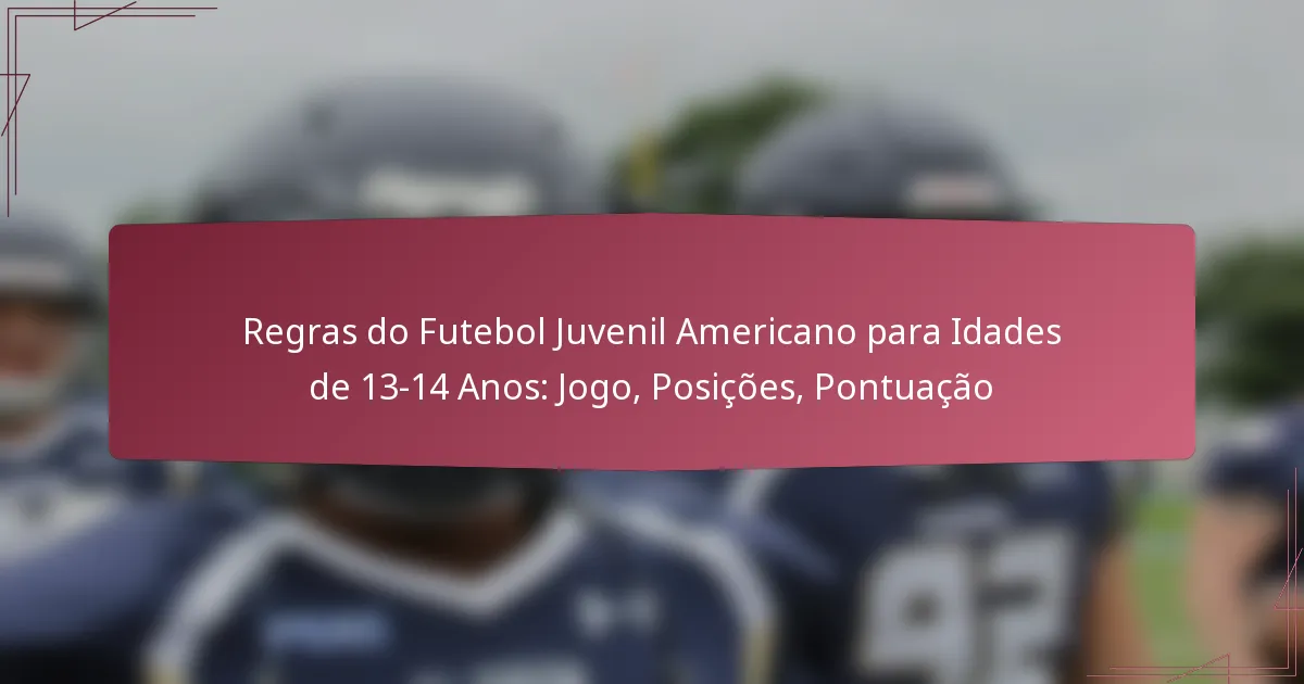As regras de jogo para o futebol juvenil americano para idades entre 13 e 14 anos enfatizam o jogo limpo, a segurança e o desenvolvimento de habilidades, abordando aspectos como a duração do jogo e o número de jogadores. Os jogadores podem explorar várias posições, incluindo quarterback e linebacker, cada uma projetada para aproveitar as suas habilidades únicas. Métodos de pontuação como touchdowns, field goals e safeties são cruciais para uma estratégia de jogo eficaz e para entender a dinâmica do jogo.
